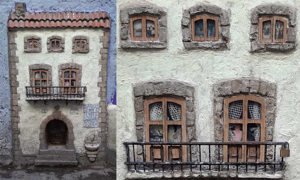 Se completa con una fuente adosada a esa pequeña fachada en cuya parte inferior se incorpora un pequeño cuadro con la firma del artista.