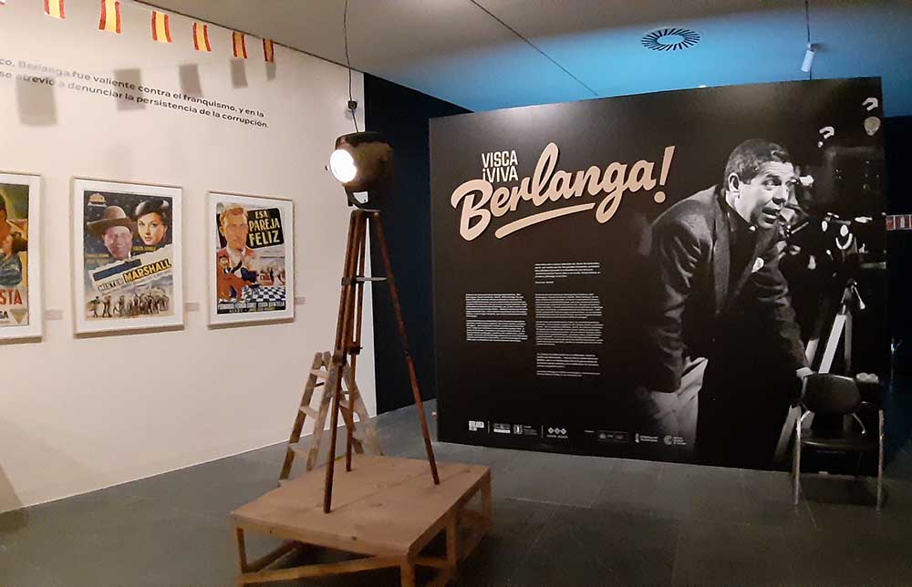 La exposición, comisariada por Joan Carles Martí, mantiene el tono festivo y barroco que caracteriza el cine de Berlanga; así el acceso a la misma se realiza bajo una reproducción del célebre balcón que aparecía en Bienvenido, Mr. Marshall e invitando al visitante a recorrer el universo creativo del director a través de carteles, fotografías, documentos y reproducciones de sus películas.