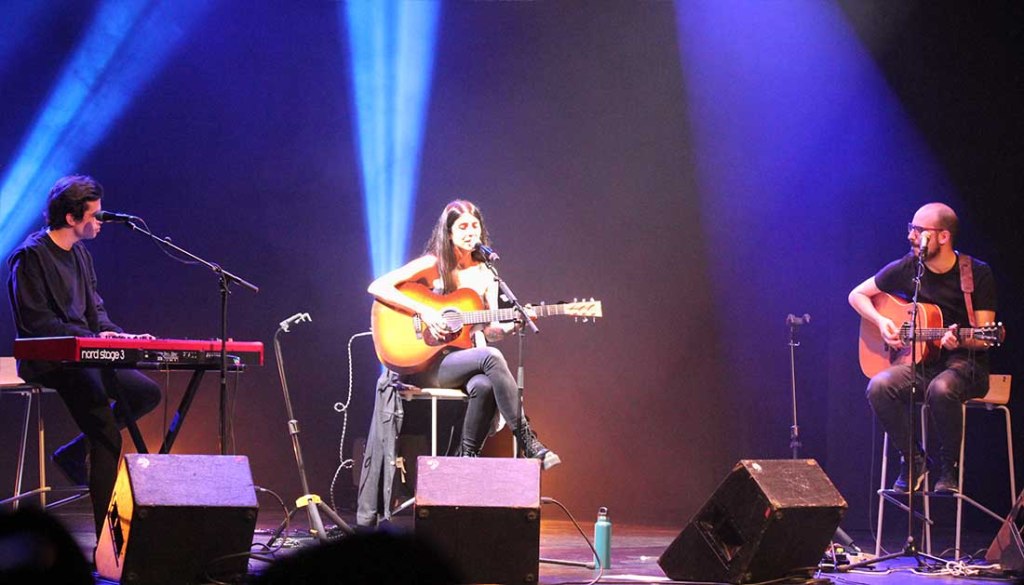 Bely Basarte se presentó acompañada por Alberto Torres (guitarra, violín y coros) y Marlon Pacho (teclado, coros) y juntos comenzaron con la festiva Roma, el tema que abre su segundo disco. Las canciones de su último trabajo tuvieron un protagonismo especial y pudimos disfrutar de Sin venganza, C’est la vie, Acércate, San Pedro, y el tema con el que cerró el concierto, Me va a doler.