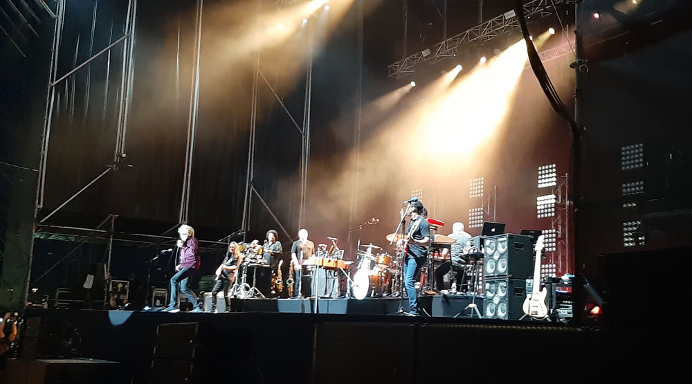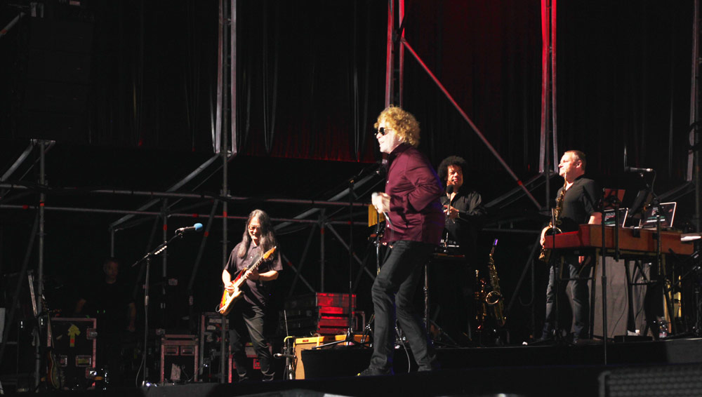 Y pronto quedó patente que Hucknall se encontraba en perfecta forma. A sus 62 años, los cumple el 8 de junio, su característica voz permanece inalterable, todo un aval al que se une un dominio del escenario propio de quien acumula casi 30 años de experiencia. El cantante juega con la distancia del micro, el lenguaje corporal, las pausas que van modulando el ritmo interno del tema y su capacidad de contagiar la alegría al público. Bastante hablador –con “hola” y “gracias” en castellano– presentó los temas e incluso se refirió a la panorámica que veía desde el escenario, con la presencia de los barcos y la playa, para imaginar que estábamos en el Caribe, interpretando Night Nurse a ritmo de reggae.