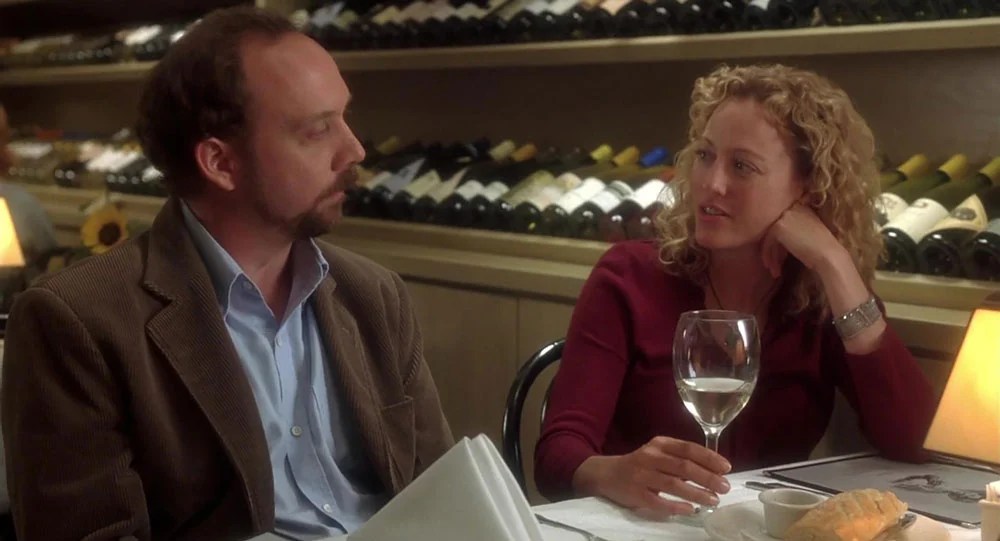 Si en las road movies hay ocasiones en que el viaje está planteado como una excusa. En Entre copas la experiencia del enoturismo se convierte en el molde ideal para reflejar los sentimientos de los personajes. En una de las mejores escenas de la película, cuando Maya y Miles se sinceran sobre la vida en una conversación íntima, todo transcurre bajo la simbología de las uvas y el cultivo del vino. Expresando cada uno de ellos lo que supone la experiencia del vino –mientras la cámara se acerca a sus rostros– observamos como Miles y Maya encuentran el nexo común que sirve para generar la atracción entre ellos.