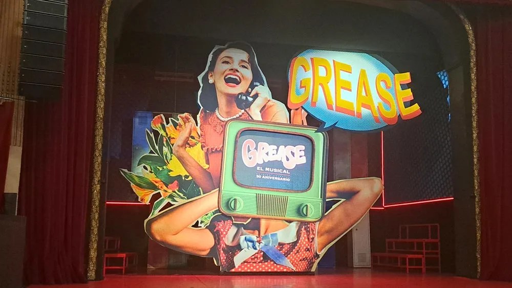 David Serrano armoniza los diferentes números a través de un hábil juego de decorados en los que prima la sencillez y el minimalismo basado en pantallas led para potenciar lo que ocurre realmente en escena. Hay también un uso del espacio del propio teatro, aprovechando los palcos laterales para albergar a parte de los músicos e incluso utilizar esos palcos para el dueto que interpretan Sandy y Danny.