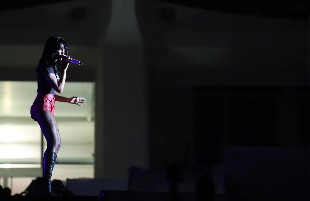 Continúo la actuación con 24 rosas –otro de los temas de Alpha con el micro recubierto de rosas- al que siguió Hermosa casualidad (su reciente colaboración con Sen Senra), Quieres y Mariposas. En Vas a quedarte, la cantante catalana dejó el protagonismo al público que canto prácticamente la canción completa.